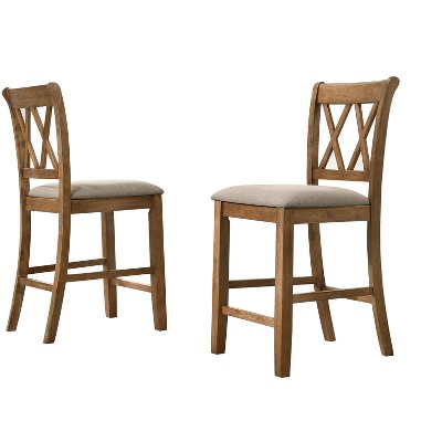 Set of 2 Modern Counter Height Bar Stools, Faux Leather Upholstery with Soft Cushion & Metal Sled Base, 25.6", Caramel Brown
