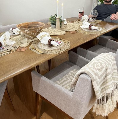 I love the look of these. They are on the smaller side, so look at the measurements before ordering. I use these at the head of my walnut dining table with other midcentury chairs on the side.