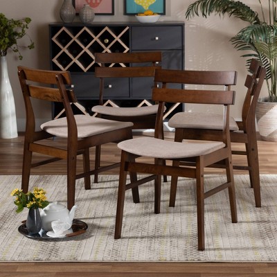 Set of 2 Nexus Mid Century Modern Walnut Wood Fabric Upholstered Dining Side Chair - Baxton Studio