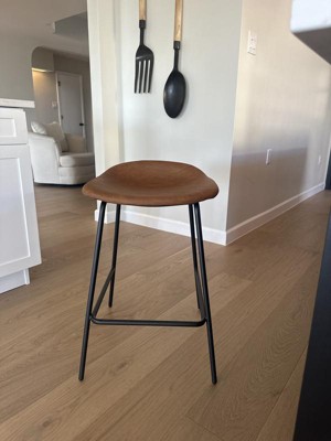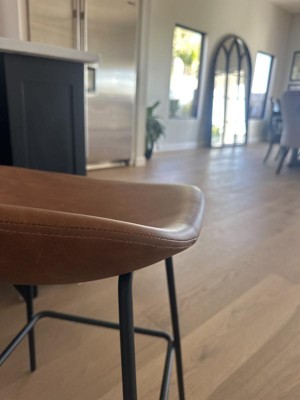 A: The material is Faux leather. The ones we have are a dark brown.