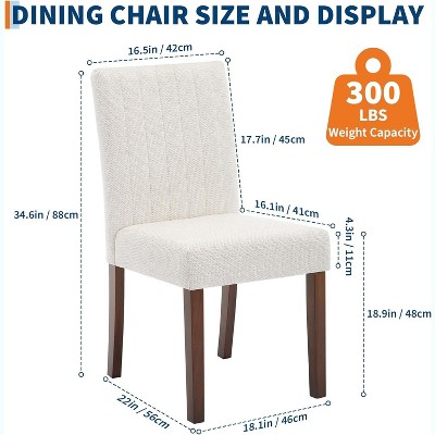 Set of 2 Parsons Tufted Dining Chairs - Upholstered Fabric, Wood Legs & Padded Seats, Blue Kitchen Side Chairs