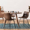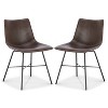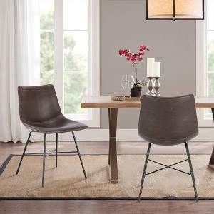 Subtle curves and modern lines merge, infusing this dining chair and your space with undeniable sophistication. The upholstered textured high durability leatherette complements any decor style, and its gently scooped seat is outlined in eye-catching luxe reinforced saddle stitching detail. Stunningly sturdy, this dining chair features a welded steel base and steel legs in a matte black powder coating. Long-lasting and oh-so charming, it’s the perfect addition to your home dining area or breakfast nook.