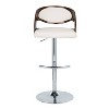 Uncork great kitchen and bar design with the Pino Adjustable Barstool by LumiSource featuring a polished bent wood back and upholstered seat. Hydraulics with 360 degree turn allow for easy adjustment and rich color combinations add a lively spirit to this unique stool. This stool is a perfect addition to your kitchen or bar area. Available in various colors, choose the one that suits your space best!