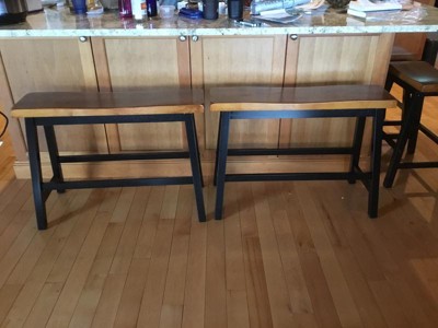 I love these benches because they are both beautiful and functional. I purchased them as an alternative to individual stools because I was looking for a cleaner, less busy look. They were easy to assemble and look great with the wood floor around my kitchen counter. Such a great choice!