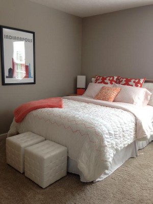 I wanted some "mod" looking little ottomans to put at the foot of a bed. These work perfectly, and I was able to buy both for half the price of just one on another site. My only teensy disappointment is that: (1) one of the little black feet on one of the ottomans was cracked in half when it arrived. So, you can't move that ottoman around or one of the feet falls off. But as long as it stays in place, it's fine. (b) they were actually a little smaller and shorter than I thought, so double check the measurements to make sure they fit your dimensions. Otherwise, though, I'm really happy with them!
