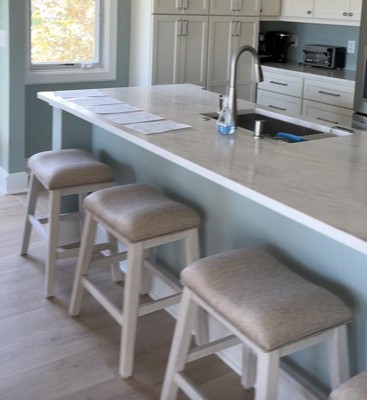These stools look great at my island. I had them in my previous home and the buyer wanted the stools so I left them. Once settled in our new home, I ordered them again. They blend with any decor and are very comfy.
