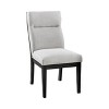 Complete your modern dining room with the Sky Fabric Side Chairs. Upholstered in soft beige fabric and crafted from solid wood and veneer in a classic black finish, this table can, the side chairs provide generous support with contoured tufted back rests. Wide seats ensure comfortable room for guests while sturdy tapered legs provide a stable, lasting foundation.