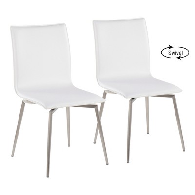 Set of 2 Swivel Dining Chair with Walnut Wood Back, Tufted Faux Leather Seat and Stainless Steel Base