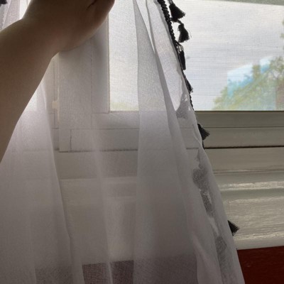 LOVE these curtains. The sheer material is going to be pretty transparent. I think it still lets in enough light while giving us that feeling of added privacy. The grey tassels are super cute - simple but still an fun added accessory (beware if you have young cats - I bought these knowing sheer material can snag easily)