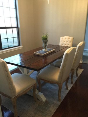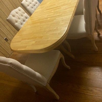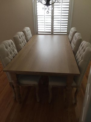 Perhaps those who reviewed the chairs don't sit in them often, but we do and boy have we gone from super happy to super frustrated. We ordered two sets (4 chairs). Two of the four had issues including, one chair was missing padding with the tufting (!), and another chair's seam where the nailheads are was fully exposed (unlike the others). Target was awesome and exchanged them. Third set arrived and the leg color was COMPLETELY different than the first two sets. Yep! I mean it was like night and day difference. The first set were much classier. The second set were an ugly bright brown with splashes of white. For the price, decided I would stain all of the legs so they would match. Over the next few weeks, more problems developed. The padding on two of the chairs went from AWESOME to deflated. All we can feel now is the wood frame around the seat. When I went to paint the last two chairs, I discovered a spring was sticking out underneath. The other chair developed a strange, loud squeak every time we got up and we are not heavy. Target was willing to exchange, but they had no access to inventory. They told me I could purchase directly. I did. I waited, and waited, and then received a merchandise delay message. Finally Target canceled my order because the product was unavailable. We are now past the return threshold. Target did give us minor compensation for the damaged product, but we are stuck with chairs that are pretty (after we fixed them), but not functional. Buyer Beware! This chair looks good ... but .... watch for quality control.