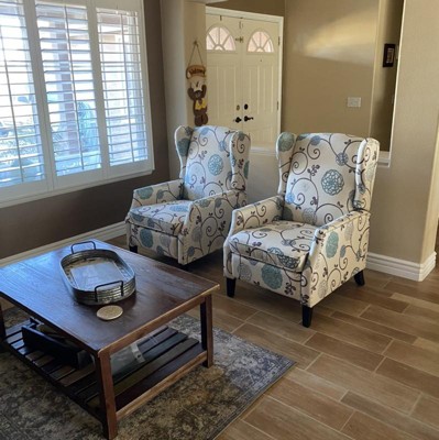 Christopher Knight Home Set of 2 Wescott Contemporary Fabric Recliners Light Beige with Blue Floral/Dark Brown : Upholstered Wingback Accent Chairs