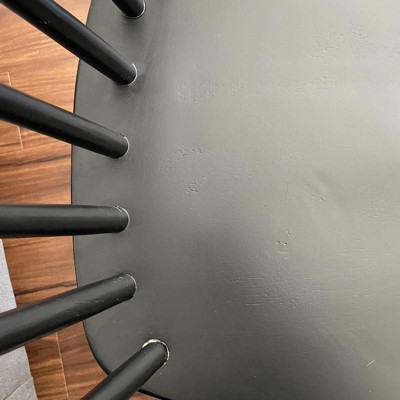 submitted byPeonydlin - 8 years agoA: Hi Jenna - Thanks for asking a great question on these classic dining chairs. While they're made of hardwood, we're seeing the "black" variation to be a consistently solid glossy sheen. We're hoping this information helps. -Michael