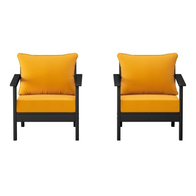 Set of 2 Woven Rattan Outdoor Lounge Chair with Rust Resistant Iron Frame, Modern Yellow Patio Chairs-3irtyhousy