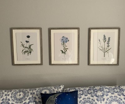 Set of 3 16"x20" Framed Vintage Botanicals Decorative Wall Art Natural/Blue - Threshold™