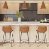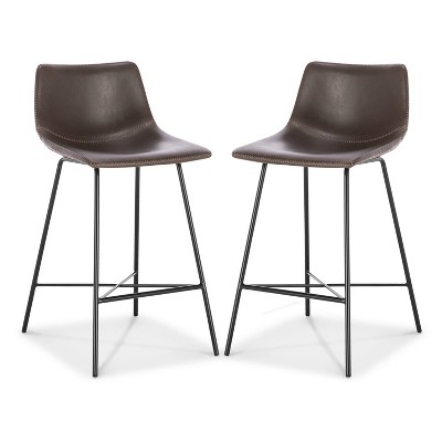 Pull this handsome counter stool up to the bar or kitchen island for a signature urban look. Designed with a gently scooped seat and low-profile back upholstered in beautiful, yet durable textured leatherette, its subtly exposed saddle stitching will leave your guests impressed. A welded steel base ensures this robust counter stool is a great choice for all kitchen countertops.