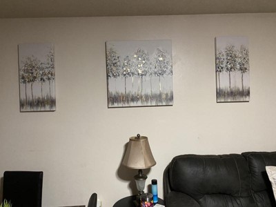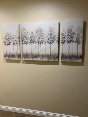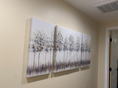 [This review was collected as part of a promotion.] I love my Blue Midst Forest Gold Foil Triptych 3-Piece Canvas Wall Art Set. It compliments my living room really well