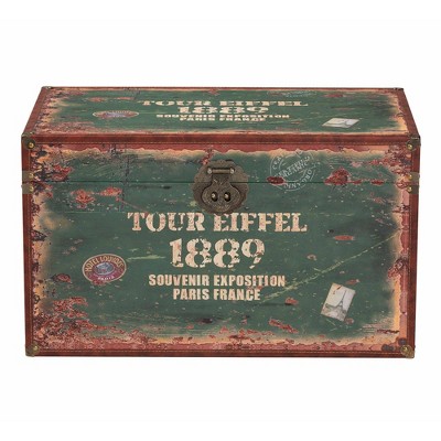 This storage trunk set serves both decorative and functional purposes and can be stacked together or display separately in vintage-styled space. This item ships in 1 carton. Standalone or in set of 3 exhibit or storage trunks. Suitable for indoor use only. This item ships fully assembled in one piece. Maximum weight limit is 50 lbs. This multi colored large decorative box comes as a set of 3. Farmhouse style. Detailed with the typography "SANT' ANTIOCO, PINOT GRIGIO VINO DA TAVOLA," and the year "1973".