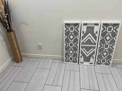 Create a simple arrangement on your wall with our Madison Park Mandal Panel Two-tone Geometric 3-piece Wood Wall Decor Set. Globally inspired patterns are beautifully printed and carved on soft natural wood, giving these wood panels a warm and updated look. Each panel piece is finished with hooks on the reverse to hang, making mounting this wood panel set a breeze. Hang panels together with desired space in between for a focus piece or separate panels throughout your space to pull a room together for an eclectic style.