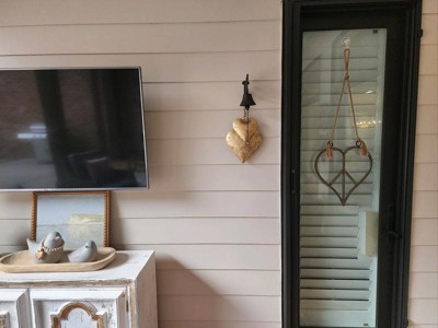 - •Features three rustic heart-shaped iron bells with small hanging ropes