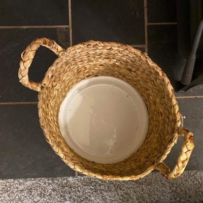 Set of 3 Seagrass Wicker Basket Planters with Handles Natural - Olivia & May: Indoor/Outdoor, 20" Size