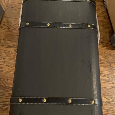 - •The wooden materials of this trunk set are encased in faux leather and metal accents are securely glued to each trunk