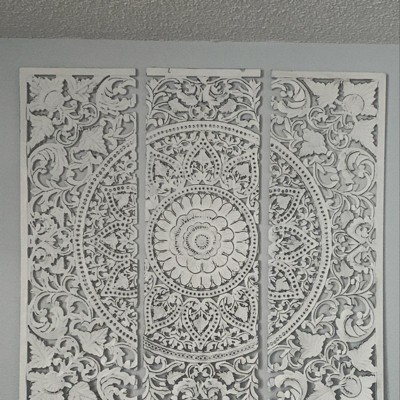 16" x 48" Set of 3 Wooden Floral Handmade Carved Wall Decors, Mandala White - Olivia & May: Bohemian Style, Vertical Display