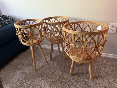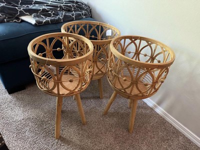 Set of 3 Wooden Planters with Stands - Handcrafted Bamboo & Plywood Plant Holders - Boho Indoor/Outdoor Home & Garden Decor - 20", 23", 26" Brown