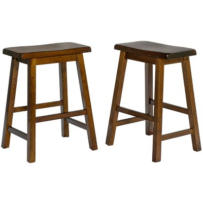 Set of 4 29” High Dark Espresso/Brown Wood Counter Bar Stools with Bonded Faux Leather Seat