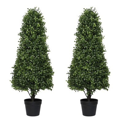 Product Name: Set of 4 Artificial Topiary Trees, Metal Ground Spikes, UV-Resistant, Easy Install, Indoor/Outdoor Garden Patio Decor, 25.6 Inch