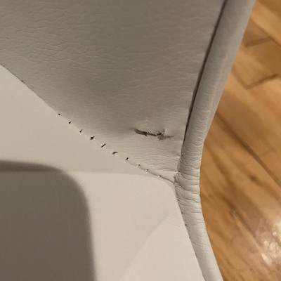 We loved these chairs. Beautiful, soft, and comfortable. The metal legs that look like wood are perfect. BUT, and it’s a big but... the faux leather is too soft. Three out of four of the chairs arrived with holes in the corners. If it had been just one chair, I would have reordered and tried again. But three chairs tells me that these won’t hold up well over the long run. So disappointing
