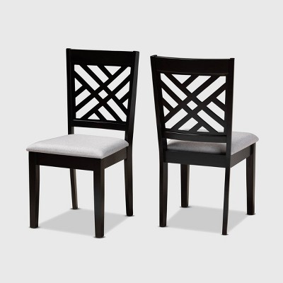 Modernize your dining room with the sophisticated design of the Clarke dining chair. Made in Malaysia, the Clarke dining chair is constructed from sturdy wood finished in a deep espresso brown. The Clarke requires assembly and is fitted with a foam-padded seat upholstered in a light fabric. The unique cut-out design on the back of the chair allows the Clarke to stand out while allowing light to flow through the dining room. A perfect fit for both formal dinner parties and casual meals, the Clarke dining chair elevates any dining experience. Dimensions: 37.4" high x 18.5" wide x 20.5" deep; Seating dimensions: 18.5" wide x 16.1" deep x 18.5" high (from Floor); Back: 19.7" high; Legs: 16.9" high;