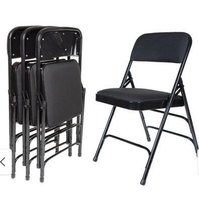 [This review was collected as part of a promotion.] These are nice durable chairs! Comfy and a very attractive black. I like these for parties or extra seating. Easy to fold and stable. I would recommend these.