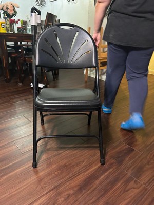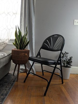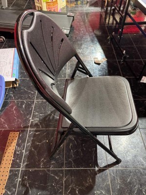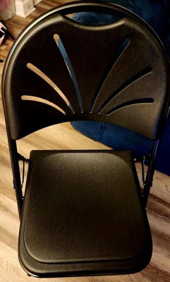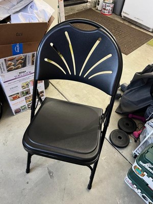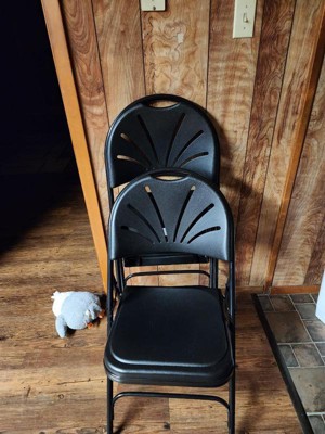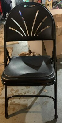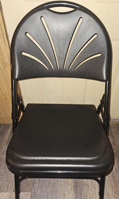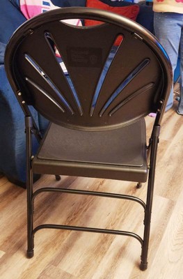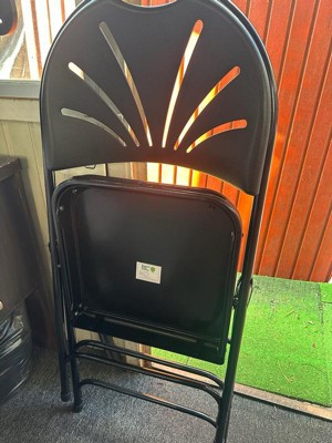 Set of 4 Deluxe Fan Back with Triple Brace Folding Chairs Black - Hampden Furnishings