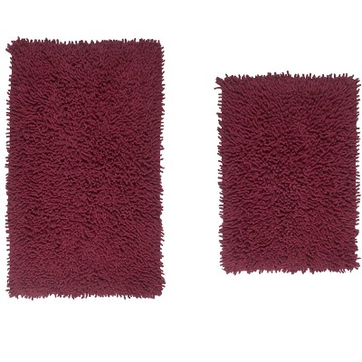 Set of 4 Fantasia Bath Rug Collection Red Cotton Shaggy Pattern Tufted Bath Rug Set - Home Weavers