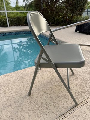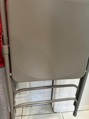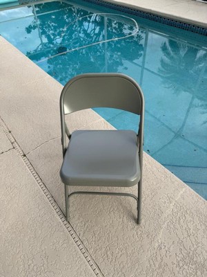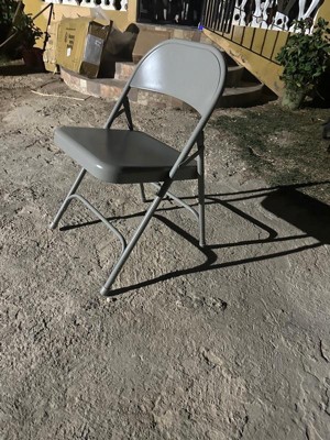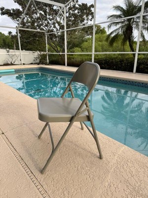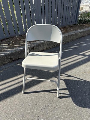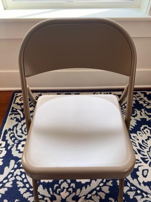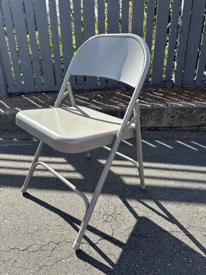 [This review was collected as part of a promotion.] If you're looking for a quality, sturdy, neutral, basic metal folding chair, this is it! This chair was delivered in a pack of 4. I like that it's a neutral gray/beige greige color. It feels sturdy and has little rubber caps on the feet for stability. It feels as comfortable as a metal folding chair can be to sit in.