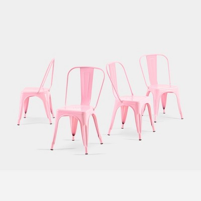 Set of 4 High Gloss Metal Dining Chairs 18" Seat Height Stackable for Kitchen, Bar, and Cafe with Easy-Clean Surface