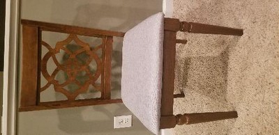 Intricate design and modern comfort create the Lylah dining chair. Made in Malaysia, the Lylah is crafted from sturdy wood in a classic square frame. The dining chair balances form and function with an intricate cut-out design on its back and a soft, foam-padded seat for comfort. This piece requires assembly and showcases gray fabric upholstery to complement the walnut brown finish on the wood. Ring-turned legs add a touch of classic style, making the Lylah dining chair a chic addition to any dining space. Dimensions: 37.4" High x 18.70" Wide x 20.50" Deep; Seating dimensions: 18.70" Wide x 15.70" Deep x 17.90" High (from Floor); Back: 19.70" high; Legs: 16.90" high