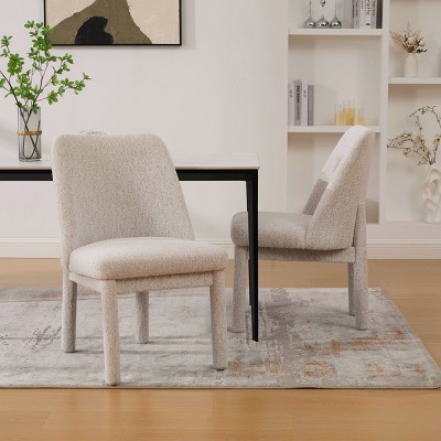 Set of 4 Mesh Rattan White Boucle Dining Chairs, Armless Cane Back Side Chairs with Metal Legs for Dining Room or Kitchen – Panipeachy