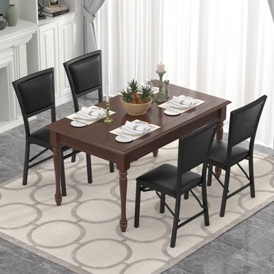 Set of 4 Upholstered Dining Chair Metal Dining Chairs with PU Leather Seats, High Back Armless Dining Chairs, Black - ModernLuxe
