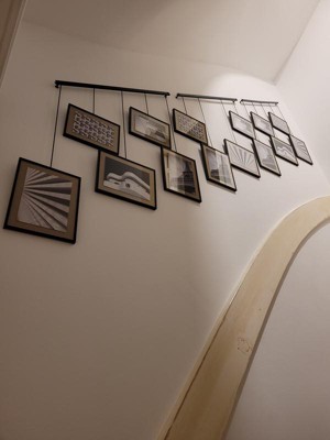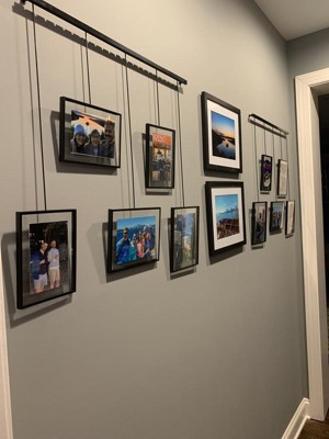 - MULTI-PHOTO WALL DISPLAY: Display your favorite photos in an eye-catching fashion using these five hanging, gallery-style frames suspended from a modern and sleek beam; features two 4x6 and three 5x7 picture frames