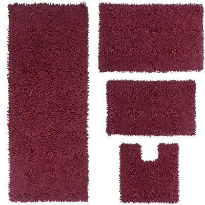 Set of 5 Fantasia Bath Rug Collection Red Cotton Shaggy Pattern Tufted Bath Rug Set - Home Weavers