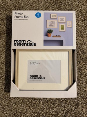 Create a delightful memory wall with the (Set of 5) Traditional Mixed Frames from Room Essentials™. Crafted from durable materials, these versatile frames hold one photo each in varying sizes: 4"x6", 5"x7", and 8"x10". Designed for horizontal or vertical display, each frame features a secure hanging triangle mount. Ideal for creating a gallery wall or showcasing memories, this set uplifts your decor in an instant.