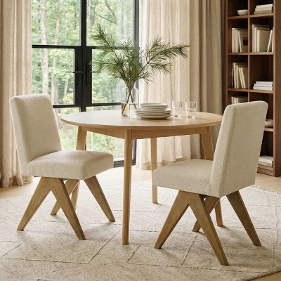 Set of 6 Beige Bouclé Upholstered Dining Chairs, Kitchen Chairs with Curved Backrest and Oak-Look Metal Legs, Comfortable Side Chairs - Panipeachy