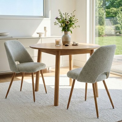 Set of 6 Gray Bouclé Upholstered Dining Chairs, Kitchen Chairs with Curved Backrest and Oak-Look Metal Legs, Comfortable Side Chairs - Panipeachy