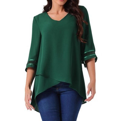 Perfect for both day and evening occasions, these blouses add a touch of elegance and style to any wardrobe. The lantern-long-sleeved high-low hem blouse is the perfect combination of femininity and sophistication. Long lantern sleeves and asymmetrical hem details add a bit of charm. Occasion: This asymmetrical, irregular hem casual top is perfect for any occasion, such as a party, dating, hanging out with friends, work office, or a night out. Made of chiffon fabric, soft, lightweight, and breathable.