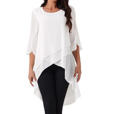 Perfect for both day and evening occasions, these blouses add a touch of elegance and style to any wardrobe. The lantern-long-sleeved high-low hem blouse is the perfect combination of femininity and sophistication. Long lantern sleeves and asymmetrical hem details add a bit of charm. Occasion: This asymmetrical, irregular hem casual top is perfect for any occasion, such as a party, dating, hanging out with friends, work office, or a night out. Made of chiffon fabric, soft, lightweight, and breathable.