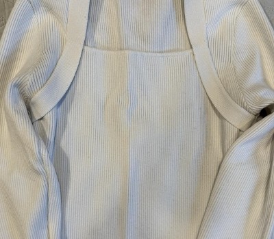 • Slim Fit, Solid, Slit Hem, Square Neck, Long Sleeve, Midi Length, Stretch Fabric