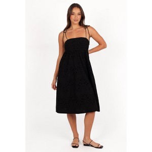 Meet our darling Sevara Midi Dress in Black! This baby doll style frock features thin tie-close straps that fall over the shoulders to meet a chic square neckline. With a concealed back zip and a handy hook and eye clasp, you're assured a perfect fit.