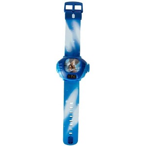 Keep track of time like a true Time Lord with this officially licensed Doctor Who watch! This sleek digital watch has an image of the Eleventh Doctor pointing his Sonic Screwdriver. Watch projects an image of the Doctor in his brown coat! Light blue wrist band with Doctor Who logo. Officially licensed Doctor Who product!