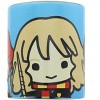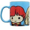 - Blue mug features chibi character artwork of Harry, Ron, and Hermione!